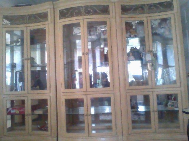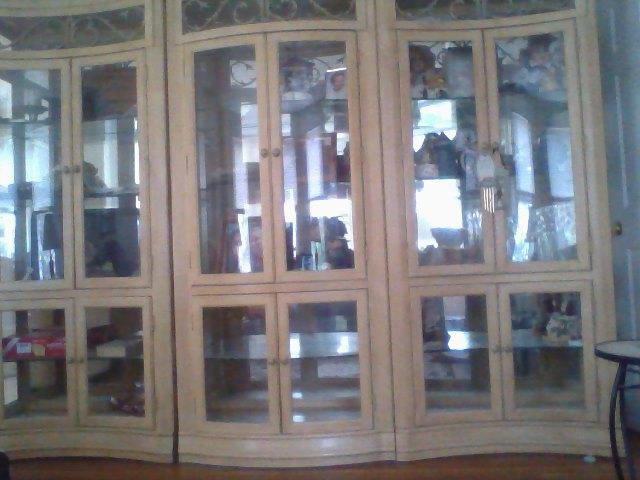These cabinets are beautiful they are 92 inches long and approx. 6.5-7 feet tall. They have glass shelves.Originally sold for $7,000.00 They all light up. Mint condition.
